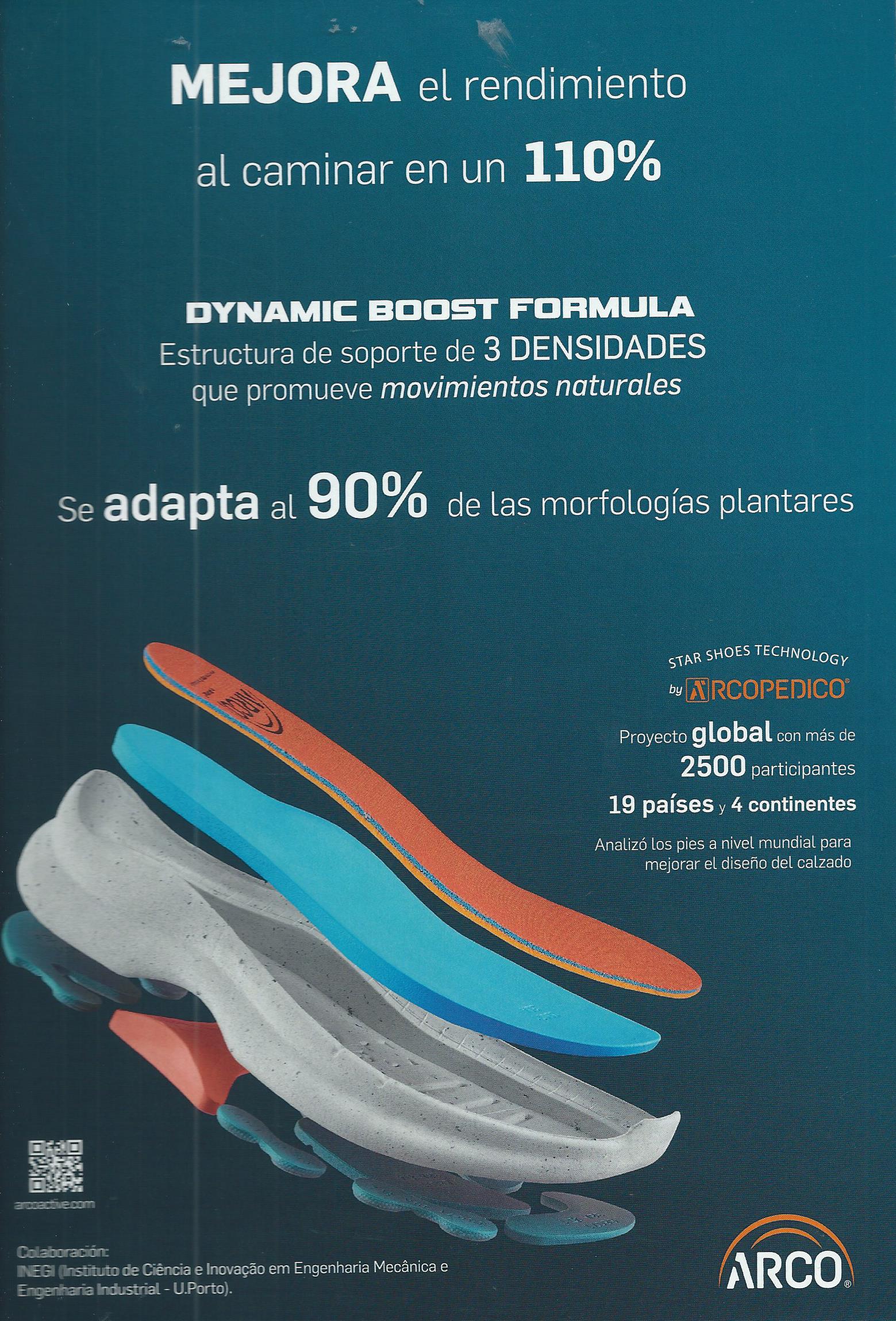Estructura de soporte de 3 densidades que apoyan correctamente el pie,distribuyendo el peso del cuerpo uniformemente por toda la superficie plantar. Promueve un retorno de energía mejorada al caminar y devuelve impulso a cada paso , Recomendada para pies cavos y fascitis plantar. Tallas hasta el 42