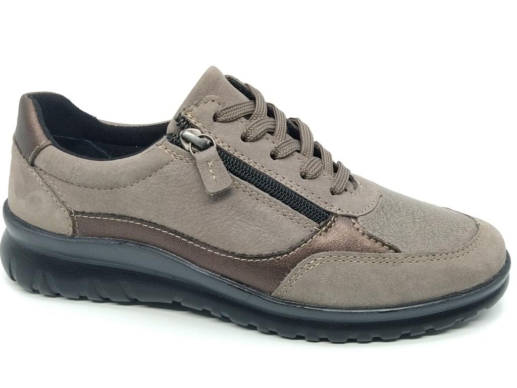 Deportivo de piel vacuno nobuck y licra, con cierre de cordón y cremallera, plantilla extraíble anatómica y piso ultraligero. Tallas hasta el 42, Ideal para dedos en garra  martillo, y juanetes, ya que la lycra es suave y adaptable